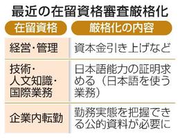 入管庁の担当者は、不適切な在留目的の外国人が資格を悪用しないよう「適正な審査をする上で必要な措置だ」と説明している。