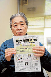◆写真展「三人展」 16日~6月14日、郡上市八幡町島谷の郡上八幡楽藝館で。郡上市内の平均80歳を超える写真愛好家3人が、集大成の作品60点を紹介する。入館料は大人(高校生以上)220円。小中学生無料。開場は午前10時~午後4時。月、火、水曜休館。29日、5月4、5、6日は開館。