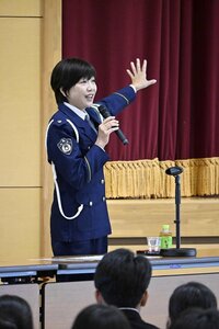 自転車のながら運転「ダメ!」 Qちゃんが岐阜県警一日交通部長 岐阜高校で呼びかけ