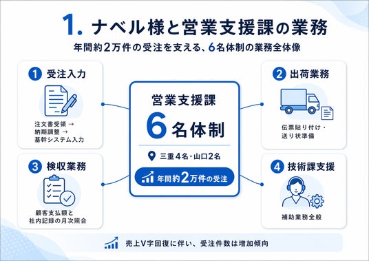 1. ナベル様と営業支援課の業務 ── 年間2万件の受注と6名体制