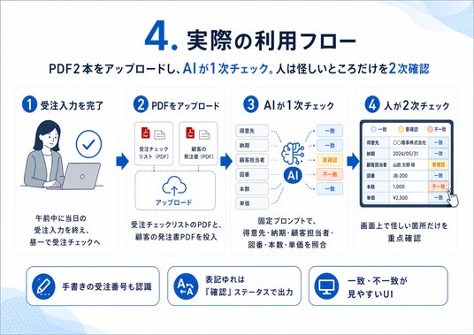 経営者の視点 ── 現場から「受託でもいい」と声が上がってきたことへの、まず「喜び」4. 実際の利用フロー ── PDF2本アップロード、1次AI、2次人