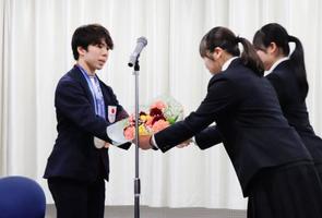 フィギュアスケート男子の佐藤駿(エームサービス・明大)が27日、母校の埼玉栄高(さいたま市)を訪れ、ミラノ・コルティナ冬季五輪で獲得した団体銀メダル、個人銅メダルの報告会を行った。来季に向け「全部の大会で優勝する気持ちで。メダルの色を変えることを目標に頑張りたい」と気持ちを新たにした。