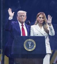 米メディアによると、キンメル氏は23日夜の番組で、25日のホワイトハウス記者会主催の夕食会のパロディーを披露。キンメル氏があいさつする設定でトランプ政権への皮肉を繰り出し、メラニアさんについて「妊娠中の未亡人のような輝きを放っている」と語った。