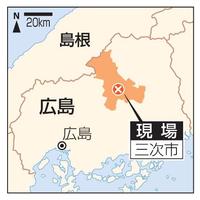 現場は中国自動車道三次インターチェンジから東に約2キロの工場が並ぶ地域。周辺には規制線が張られ、捜査員や消防関係者が慌ただしく出入りしていた。
