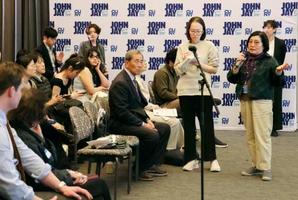 【ニューヨーク共同】米国連本部で開幕した核拡散防止条約(NPT)再検討会議に合わせ渡米した日韓の被爆者が27日、ニューヨーク市立大で約60人を前に体験を語った。被爆証言を初めて聞いたという市立大2年のペドロ・コルテスさん(31)は「核兵器がもたらした影響を人々の視点から学べば見方が変わる」と感銘を受けていた。