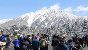 見応えあり大パノラマ、残雪の北アルプス 新穂高ロープウェイ