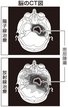 図は、脳の陽子線治療、放射線治療を撮影したCT画像を加工したものです。