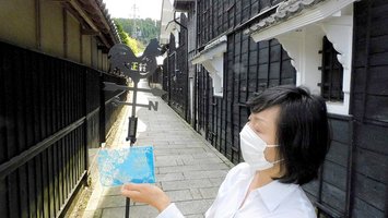 映える自撮り棒、無料貸し出し 先端に風見鶏、岐阜・大正村浪漫亭