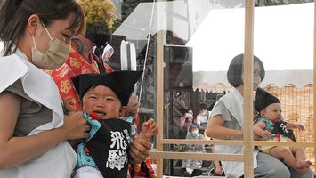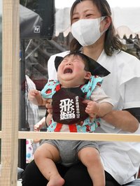 はっけよい泣いた!泣き相撲 眠る子や笑う子も、岐阜・高山市