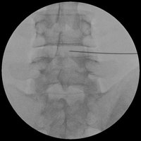 内服薬の効果が少ない場合は神経根ブロックという注射を行うことがあります。エックス線透視下にモニター画面を見ながら腰部神経根周囲に局所麻酔薬を注入します。この方法は痛みを軽減させるとともに、多くの神経根の中から痛みの原因となっている神経根を確認するという診断の意味もあります。残念ながら1回の注射で永続的に痛みを取り除くことは難しいのですが、効果を見ながら複数回注射を繰り返すことで痛みが軽減する場合があります。