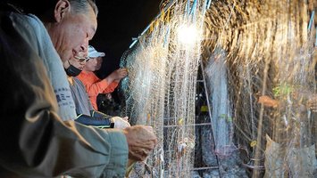 眠る魚を驚かせ追い込む「夜網漁」光と音の伝統漁 岐阜・美濃市
