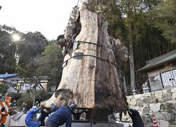 樹齢170年の守り神「御薗の榎」倒れる 幹が腐食し空洞化、岐阜市史跡