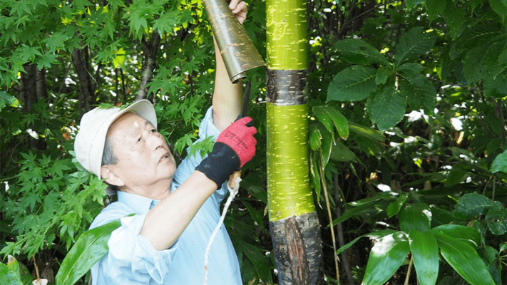 ヒノキ樹上、檜皮を採取 社寺の屋根材、全国各地に届ける 静かな、しかし迫力満点の作業だった。職人が太いヒノキの幹に縄1本でするすると登り、樹皮に木のヘラを差し込んで剝がし、3メートルの長さに切って落としてゆく。1周むき終わるとまた登る。最後は地上10... 2025年10月18日 11:59
