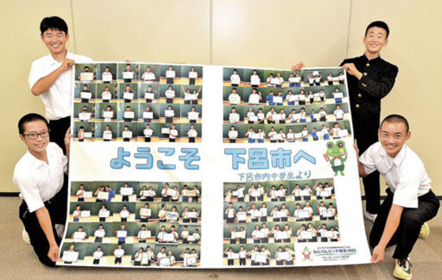 ねんりんピック岐阜2025 選手を歓迎、応援のメッセージ 下呂の中学生、パネル制作 笑顔の生徒、写真紹介