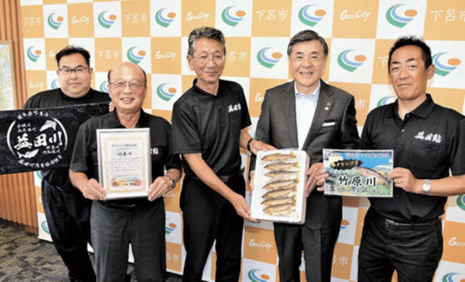 竹原川(下呂市)の鮎、全国準グランプリ 味比べ 益田川漁協組合長ら市長に報告