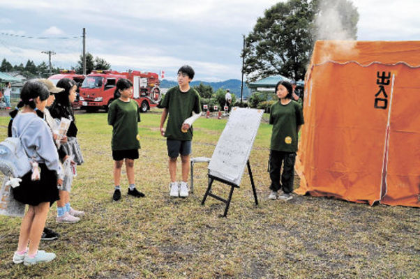 御嵩で防災フェスタ 「部屋に煙充満」脱出せよ 県政策オリンピック「金」 小中生リーダー考案