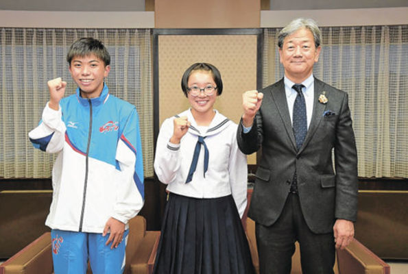 岩久さん(日枝中)山村さん(飛騨特支校)決意 全国陸上に出場 激励会で「入賞目指す」