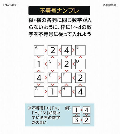 脳活新聞 不等号ナンプレ