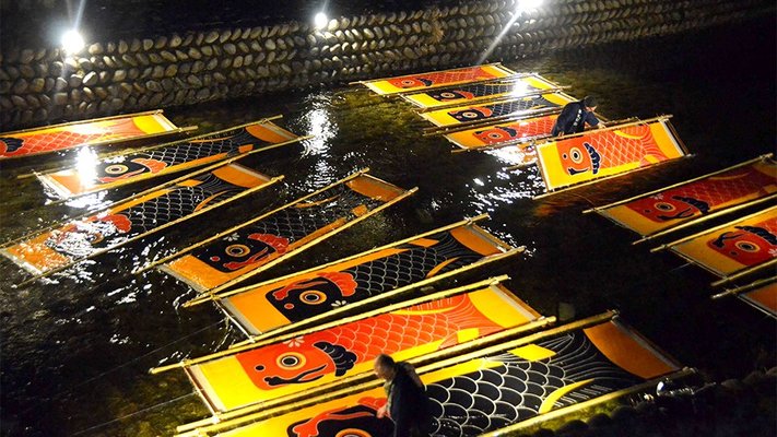 夜の寒中水泳 郡上本染、こいのぼりライトアップ 岐阜県郡上市八幡町の冬の風物詩、郡上本染の「鯉(こい)のぼり寒ざらし」が20日に行われるのを前に、19日夜、同町の小駄良川にこいのぼりが浮かべられ、ライトアップされた。ほのかな明かりに照らされた... 2024年1月20日 09:23