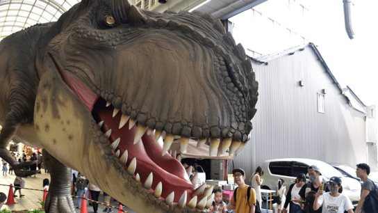 岐阜・柳ケ瀬商店街に〝巨大恐竜〟現る 迫力のロボット9体並ぶ「ジュラシックアーケード」開幕