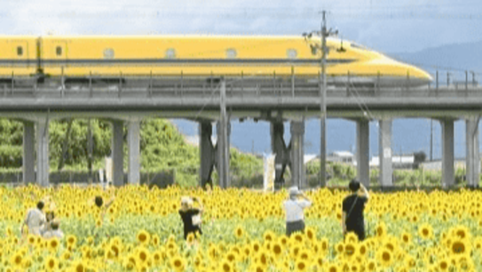 ドクターイエローとヒマワリが共演 岐阜・大垣市
