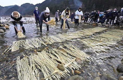コウゾの寒ざらし 清流で漂白 美濃和紙の里の冬の風物詩