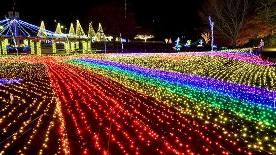 星空散歩、冬のイルミネーション 流れ星や天の川イメージ、岐阜・木曽三川公園