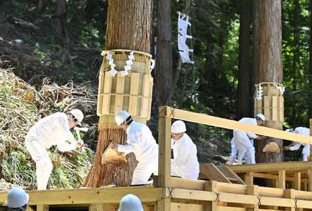 式年遷宮へ裏木曽の「御神木」切り出す 中津川市加子母の国有林で伐採式