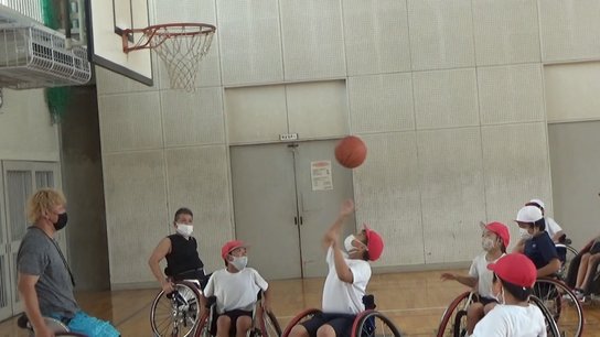車いすバスケを児童が体験 選手が指導 岐阜・岐南町