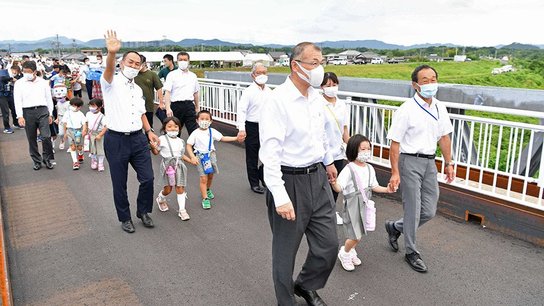 新学期は歩いて通学可能に 大雨で傾いた川島大橋の仮橋開通、岐阜・各務原市