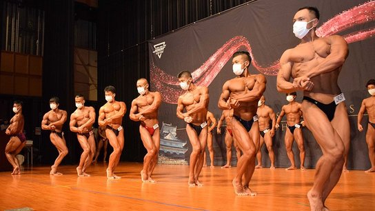 輝く肉体美、岐阜市でボディビル選手権 筋肉量や美しさ競う