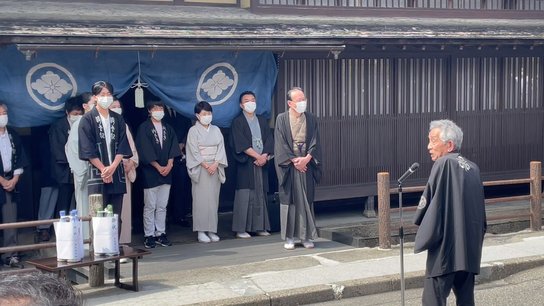 老舗料亭「洲さき」の重要文化財指定祝う 高山祭屋台が巡行