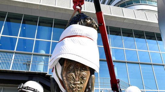 ライオン像、40年ぶりの輝き 岐阜とフィレンツェ両市友好の証 岐阜市庁舎に移設