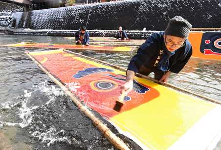 冷水で鮮やかに 郡上本染の寒ざらし 岐阜・郡上市