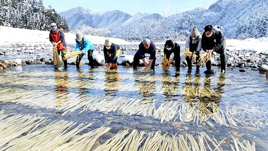 白く、白く 美濃和紙の原料・コウゾ寒ざらし