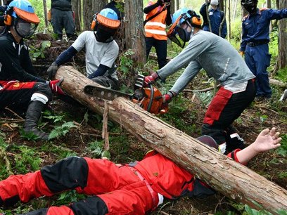 林業作業中の事故想定 高山市で救助訓練