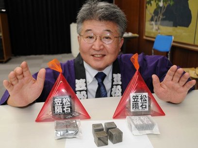 新名物!食べる「笠松隕石」 竹炭練り込み真っ黒な最中
