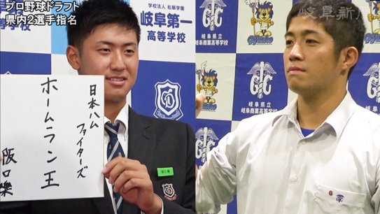 プロ野球ドラフト会議 岐阜県内から2選手が指名 阪口樂(岐阜第一高)が日ハム4位 高木翔斗(県岐阜商高)が広島7位