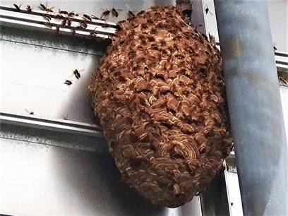 大きなスズメバチの巣を発見 関市の道路標識 「秋は巨大化」注意を