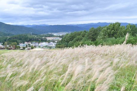 秋風に揺れるススキ 高山市の旧スキー場ゲレンデで見ごろ