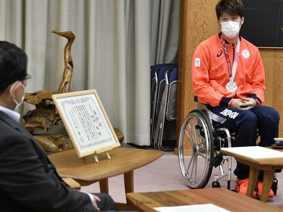 車いすバスケ銀メダル、秋田啓選手「成長できた」 岐阜県知事に喜び報告