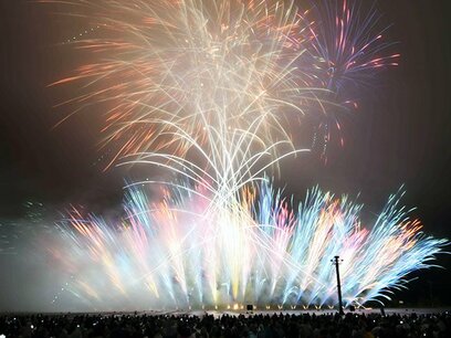 高原の夜空染める「3Dミュージック花火」 岐阜県郡上市
