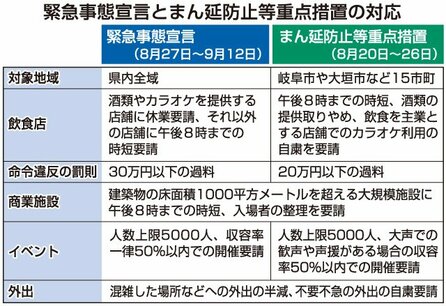 27日から酒を提供する飲食店に休業を要請 緊急事態宣言地域の岐阜県 9月12日まで