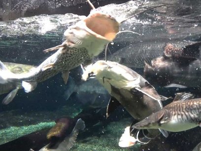 【おうちDE水族館】大きいのにビビり!食べるのも下手 ギャップ萌えメコンオオナマズ