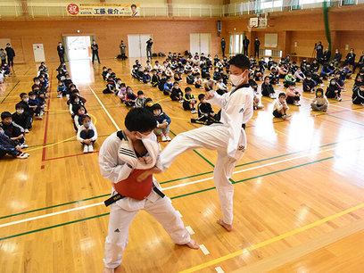 一流の技、児童に披露 東京パラテコンドー内定の工藤選手