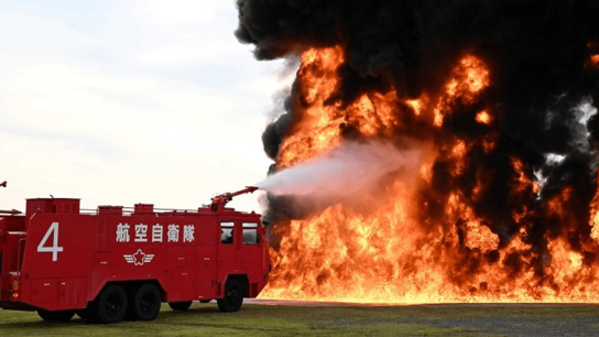 航空機事故を想定した消火訓練 各務原市の航空自衛隊岐阜基地