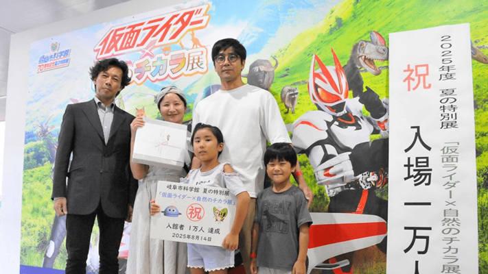 仮面ライダー×自然のチカラ展、岐阜市科学館入場1万人到達「クイズ楽しい」 岐阜市本荘の市科学館で開催している開館70周年記念夏の特別展「仮面ライダー×自然のチカラ展」の入場者が14日、1万人に到達した。1万人目となったのは本巣郡北方町の井川聡さん一家。仮面... 2025年8月15日 08:19