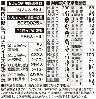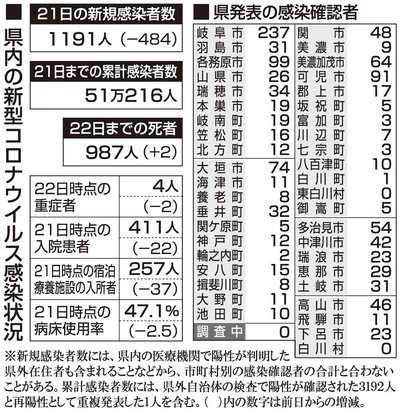 【22日・新型コロナ詳報】岐阜県で1191人感染、5日連続で前週下回る 死亡確認は2人 岐阜県と岐阜市は22日、県内で21日に新たに1191人の新型コロナウイルス感染を確認したと発表した。前の週の日曜日(15日)発表分と比べ845人減り、5日連続で前週の同じ曜日を下回った。累計感染... 2023年1月22日 19:00