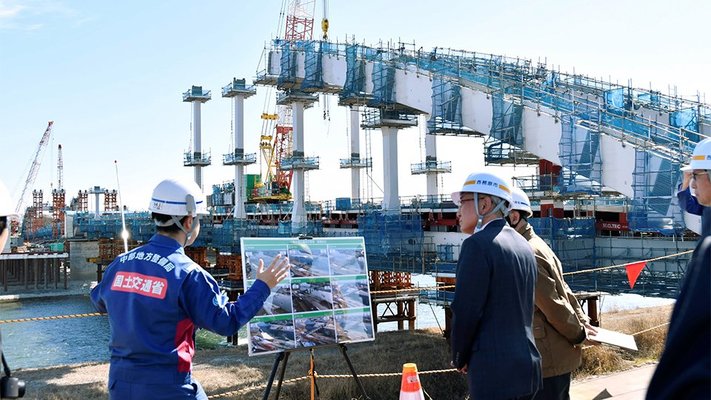 豪雨被害で通行止め続く「川島大橋」復旧へ順調 各務原市長が工事視察 2021年5月の豪雨で橋脚が傾き、通行止めが続いている各務原市の木曽川に架かる川島大橋で26日、同市の浅野健司市長が橋桁の架設が行われている復旧工事現場を視察した。岐阜国道事務所の宮本久仁彦所長... 2026年2月27日 09:12