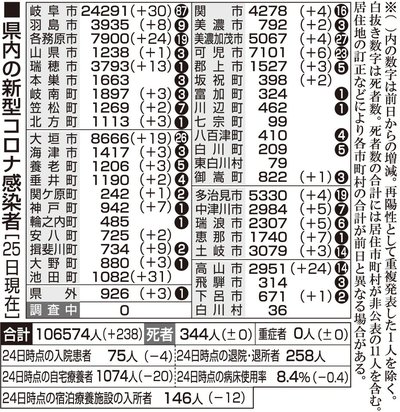 【26日速報】岐阜県内で112人が新型コロナ感染 1人死亡 岐阜県と岐阜市は26日、県内で新たに112人の新型コロナウイルス感染と1人の死亡を確認したと発表した。県内の感染者は計10万6686人、死者は計345人となった。【グラフ】岐阜県の市町村別で見る... 2022年6月26日 15:27